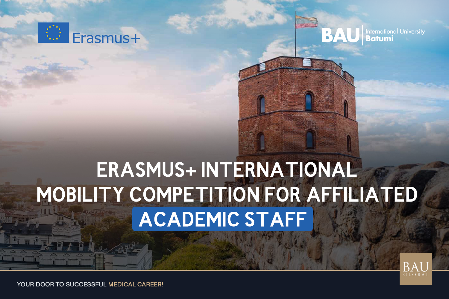 Erasmus+ International Mobility Competition for affiliated academic staff BAU International University Batumi announces a competition for the Erasmus+ fully funded mobility program. The competition is open to affiliated academic staff for participation in Erasmus+ Staff Week at the Lithuanian University of Health Sciences.