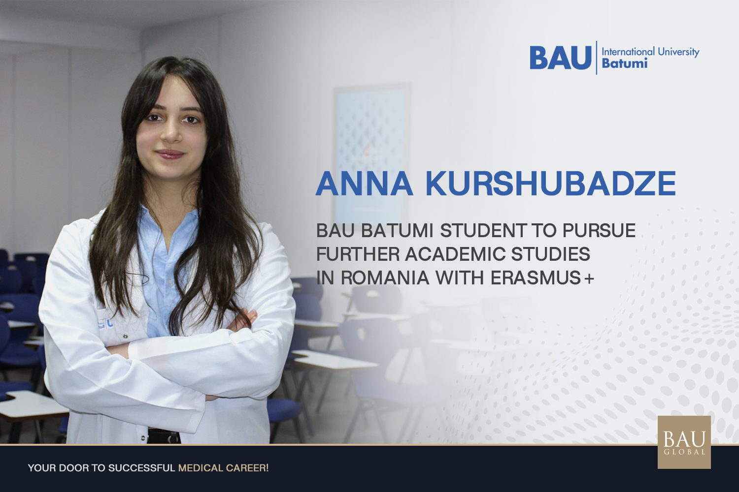 A student of the School of Medicine and Health Sciences at BAU International University Batumi, Anna Kurshubadze, will continue her studies in Romania during the spring semester of the 2025–2026 academic year within the framework of the Erasmus+ International Credit Mobility program.